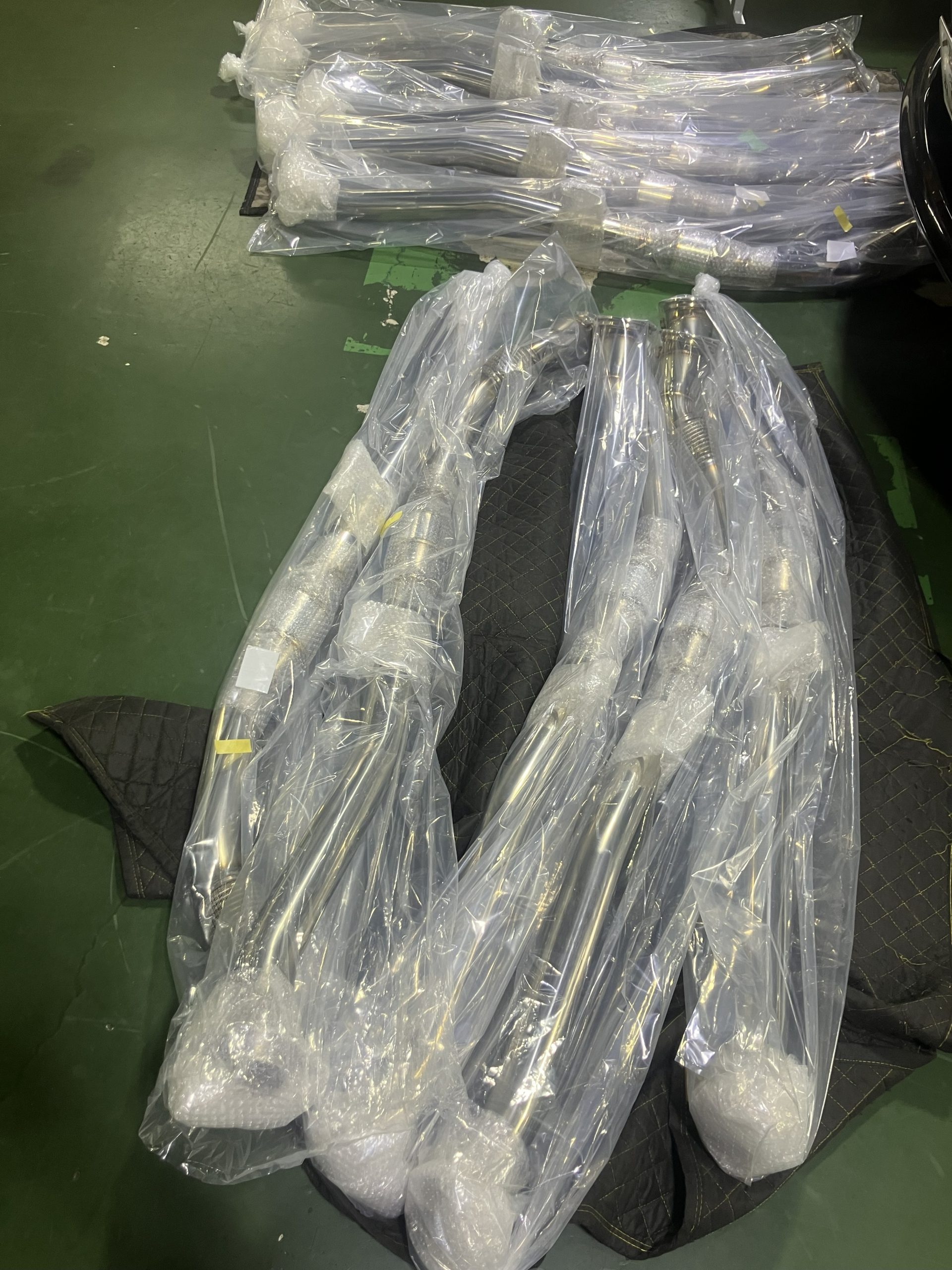 製品はエキマニ・Sパイプ・キャタライザーがセットになっており、弊社従来品と比較しパイプ径は一回り大きく、キャタライザーのセルも高効率な物を採用、中高回転域でハイパワーハイトルク仕様になっています。