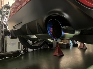 GRヤリスに数日前よりMOTECの取付を始めましたが、最後の取付パーツがフレックスセンサー、、、フレックスセンサーとは、燃料配管に流れているアルコールの濃度を計測するセンサーで、この車両は、お客様車両ですがタイムアタック時には、E85を使いブーストアップ、強化アクチュエーター仕様ですが400馬力以上のパワーを出す予定です。そして、E85と市販ハイオクを使分ける為にポンプアウトが必要でので、燃料配管上にクイックコネクターを取付て楽にポンプアウト出来るようにしました。それと、新商品のご紹介です、、、GRヤリス後期DAT用のサイレンサー付きスポーツキャタライザーです。サイレンサーサイズは、120ΦxL350mmと取付可能なギリギリサイズにしました。価格は、頑張って¥30000アップになりました。また、この商品は、基本DAT用ですが、MT車にも特注扱いでご用意可能です。