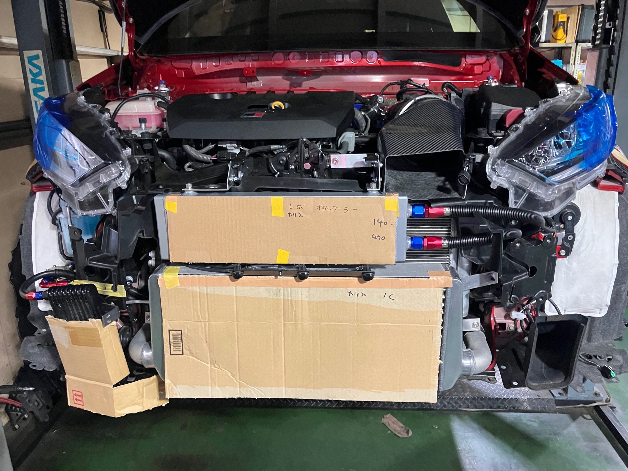 GR86取り付けもほぼ終わりです。カーボンインダクションボックスVer2、VマウントオイルクーラーVer2も取り付け終了しました。