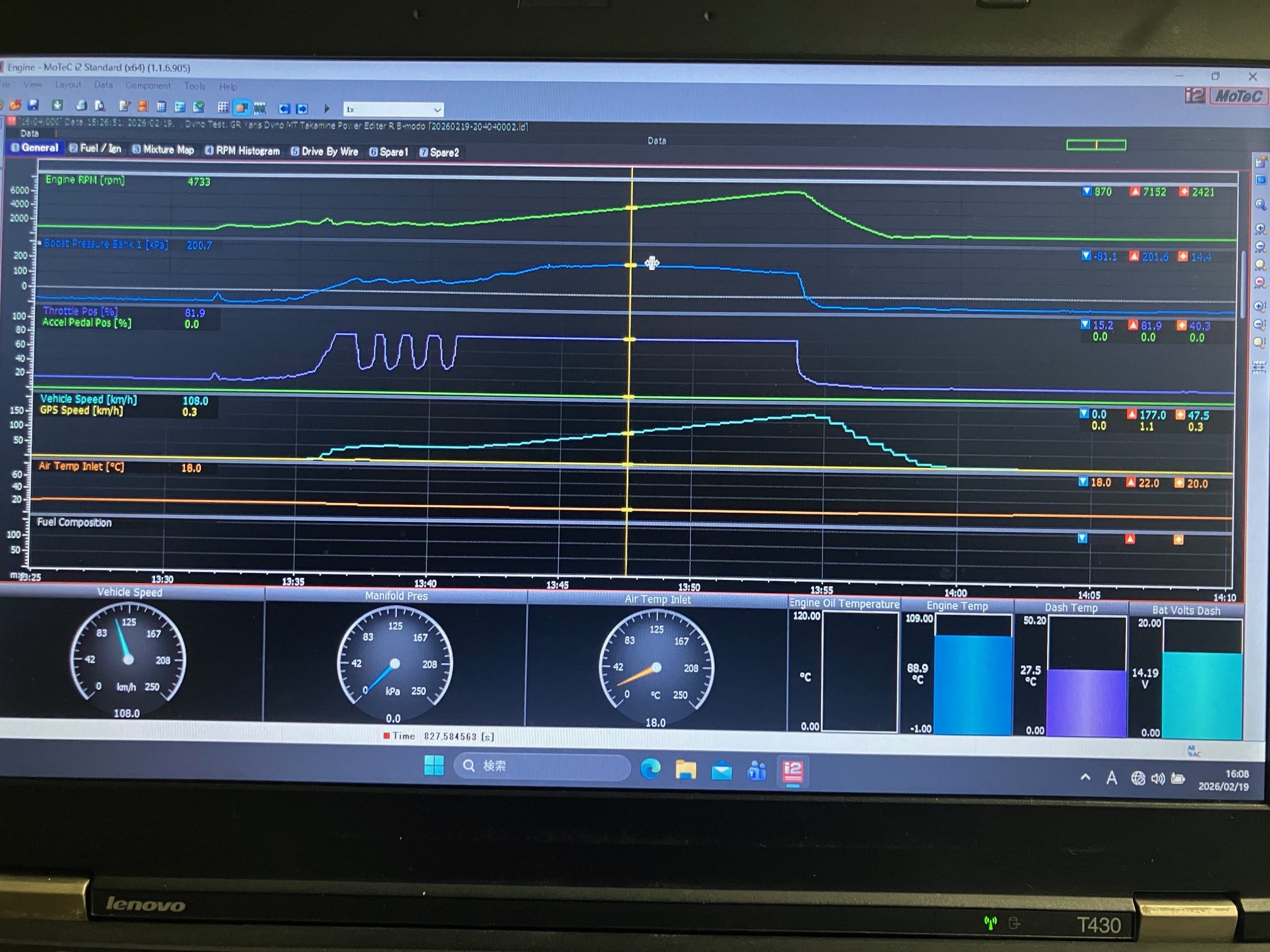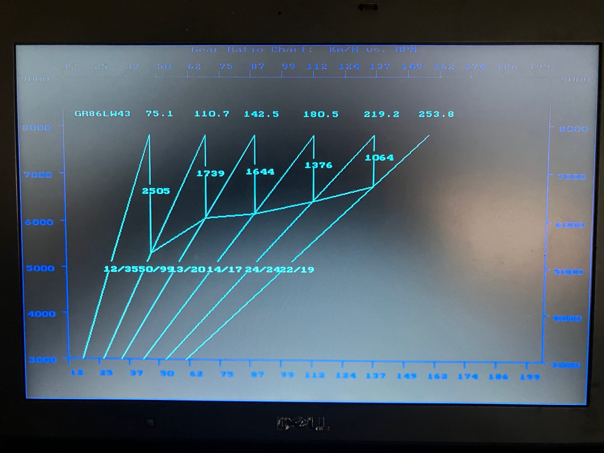 デモカーGR86LW オリジナルFA255 Dynoテスト&FSW Gearシュミレーション。