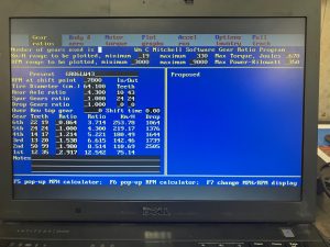 オリジナルのFA25からピストンが0.5mmO/SのFA255のハイコンプ仕様にエンジンを乗せ換えて、ダイノでセッティングしました。今日は、暖かく気温17℃でのテストで、カムシャフトは、ノーマルながら、tcf1.15で288.74馬力、トルク34.51kgとまずまずな数値が出ました。気温が一桁なら300馬力近くまで出そうです。そして、3月7日のアタック富士を走行する為にファイナルギヤのシュミレーションをしました。ノーマルエンジンのFA24で以前に4.875ファイナルでを使い、1”53,12で走った時は、6速で7800rpmまで回っていたので、今回は、ノーマルエンジン仕様から約50馬力ほどプラスですので、ハイギヤードなファイナルが必要なはずです。ギヤをシュミレーションする、Gearsを使い、レシオや車重、全投影面積、エンジントルクを計算させて、決まりました。4.875→4.3でした。