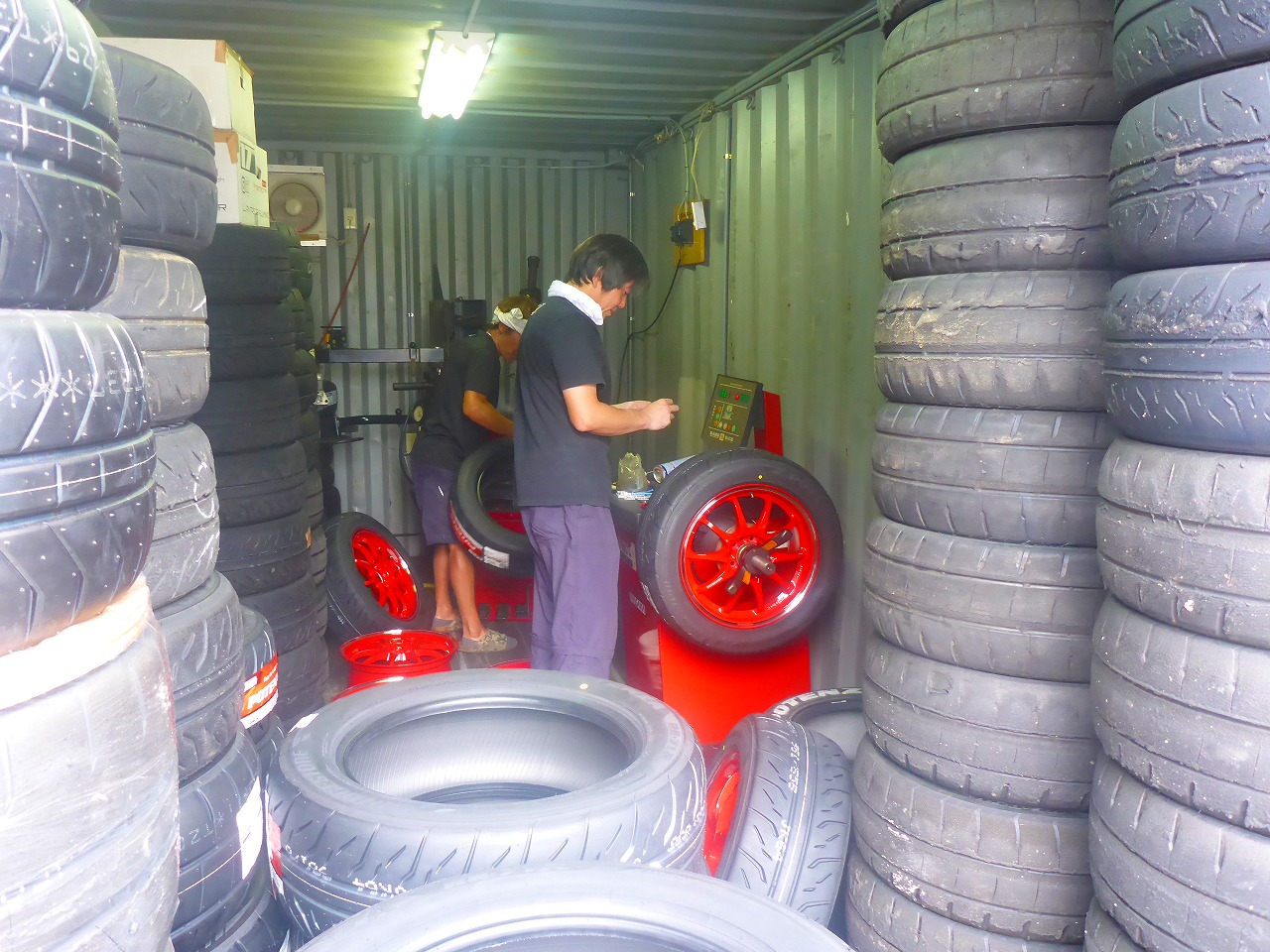 そして、来週は、レースウィーク、、今回は、3台分のタイヤホイールの管理をしないとなので、、大変な量、、今日は、7セット組付け、バランス調整のトータル28本、、専務に手伝ってもらって、、汗だくで作業。。