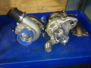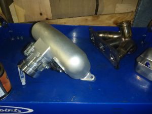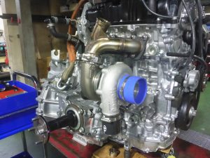 サージタンク、ワンオフエキマニ、Garrettタービンを組み込み、車両に載せます。