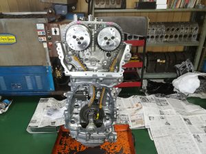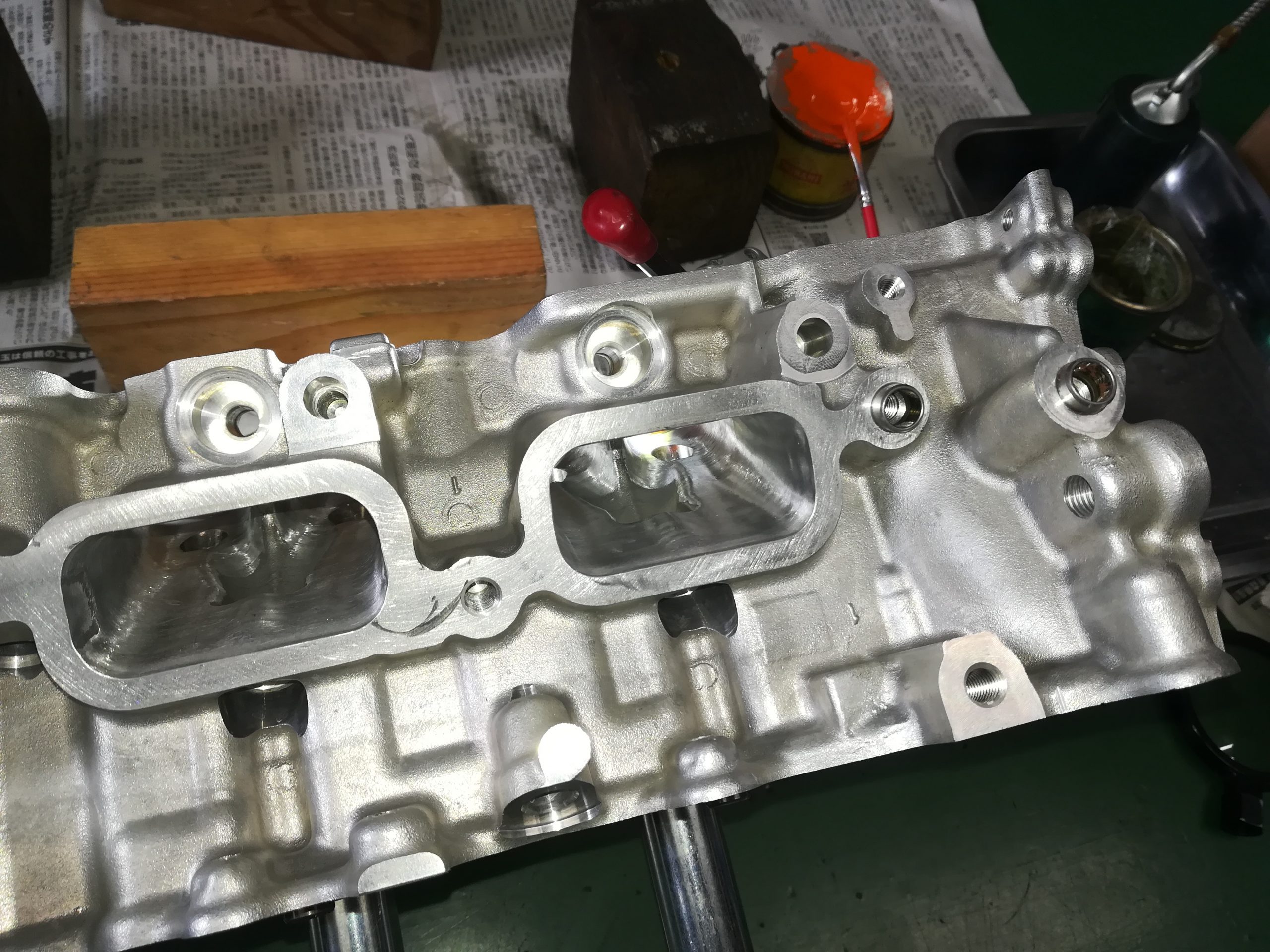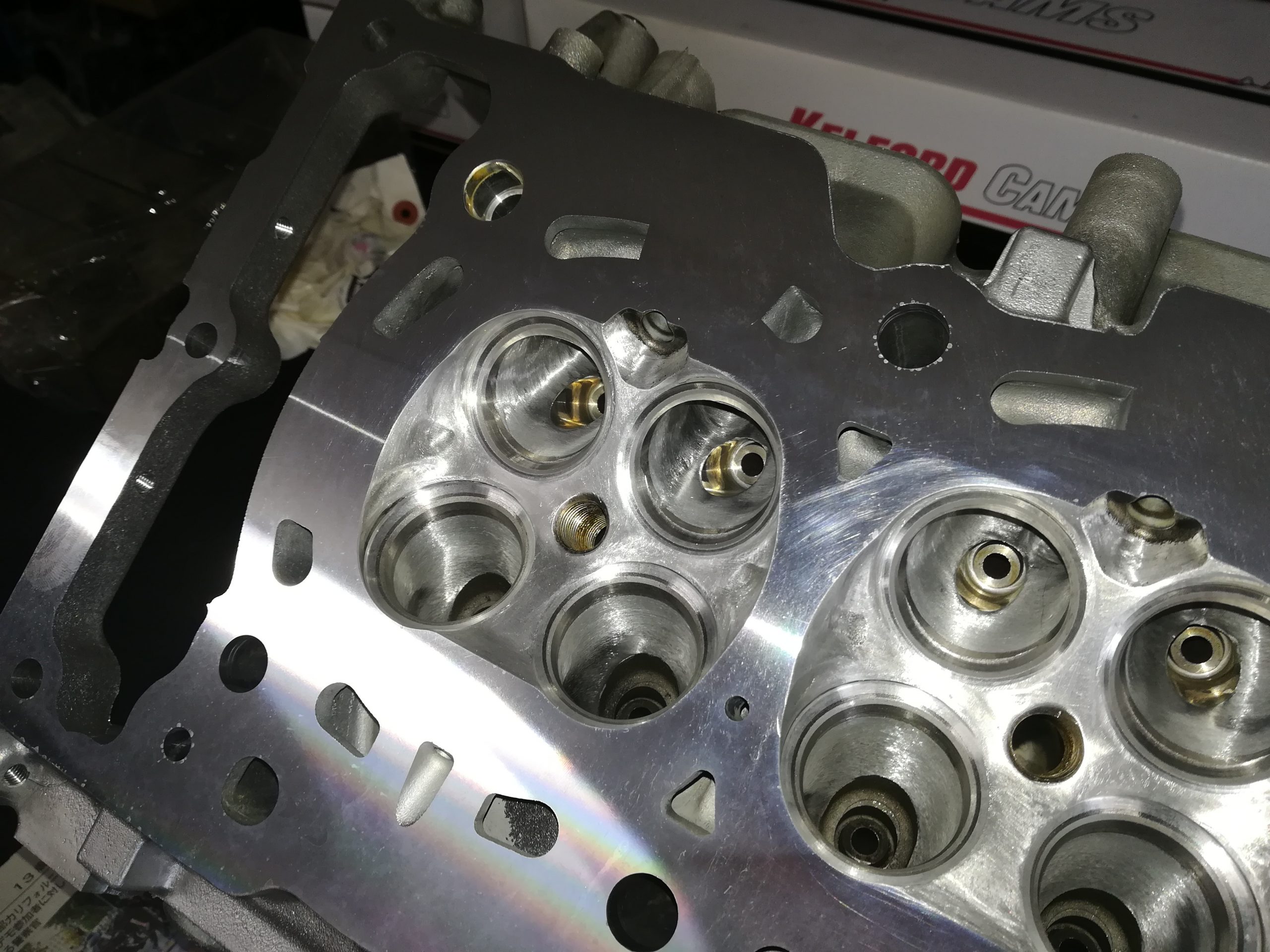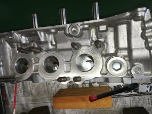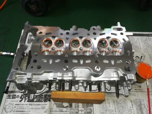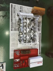 GRヤリス前期型のお客様で、GRクロスのO/Hとエンジンのヘッドチューンのご依頼、、、パーツの手配が少し難しく、納期も3週間と長めですが、今回は、エンジン本体の作業もご依頼頂いたので、先にエンジンを終わらせます。降ろしたエンジンは、シリンダーヘッドのみ取外し、加工屋さんで最小量のヘッド面研とシートカット、フェイス研磨を終わらせてから、ポート研磨と燃焼室の加工をしました。カムと強化バルブスプリングは、ケルフォード製のものをチョイスしました。