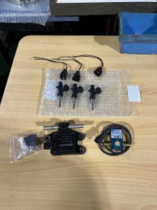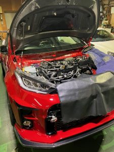 GRヤリス前期のブーストアップの強化アクチュエーター仕様にMOTEC M142プラグインのKITを取り付け中です。E85エタノール燃料も使える様にフレックスセンサーとガソリンのポンプアウト用のカップリングの取付、ブーストコントロール用のソレノイドバルブも取付ます、、E85を使いブースト2k程で使うには、ポートインジェクターが足りないので、850ccの大容量インジェクターも取り付けます。今日は、ECUの取付とオーバーライドの配線まで、、明日は、大容量インジェクターとブーストコントロールソレノイドの取付当たりまでですか。。