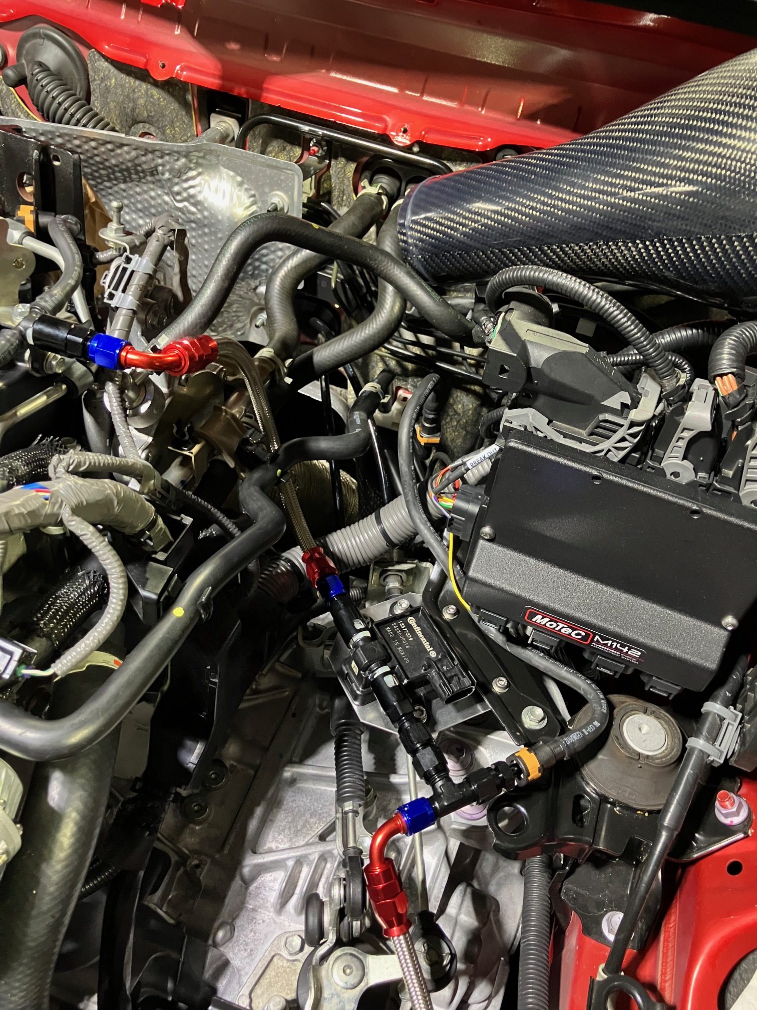 GRヤリスに数日前よりMOTECの取付を始めましたが、最後の取付パーツがフレックスセンサー、、、フレックスセンサーとは、燃料配管に流れているアルコールの濃度を計測するセンサーで、この車両は、お客様車両ですがタイムアタック時には、E85を使いブーストアップ、強化アクチュエーター仕様ですが400馬力以上のパワーを出す予定です。そして、E85と市販ハイオクを使分ける為にポンプアウトが必要でので、燃料配管上にクイックコネクターを取付て楽にポンプアウト出来るようにしました。それと、新商品のご紹介です、、、GRヤリス後期DAT用のサイレンサー付きスポーツキャタライザーです。サイレンサーサイズは、120ΦxL350mmと取付可能なギリギリサイズにしました。価格は、頑張って¥30000アップになりました。また、この商品は、基本DAT用ですが、MT車にも特注扱いでご用意可能です。