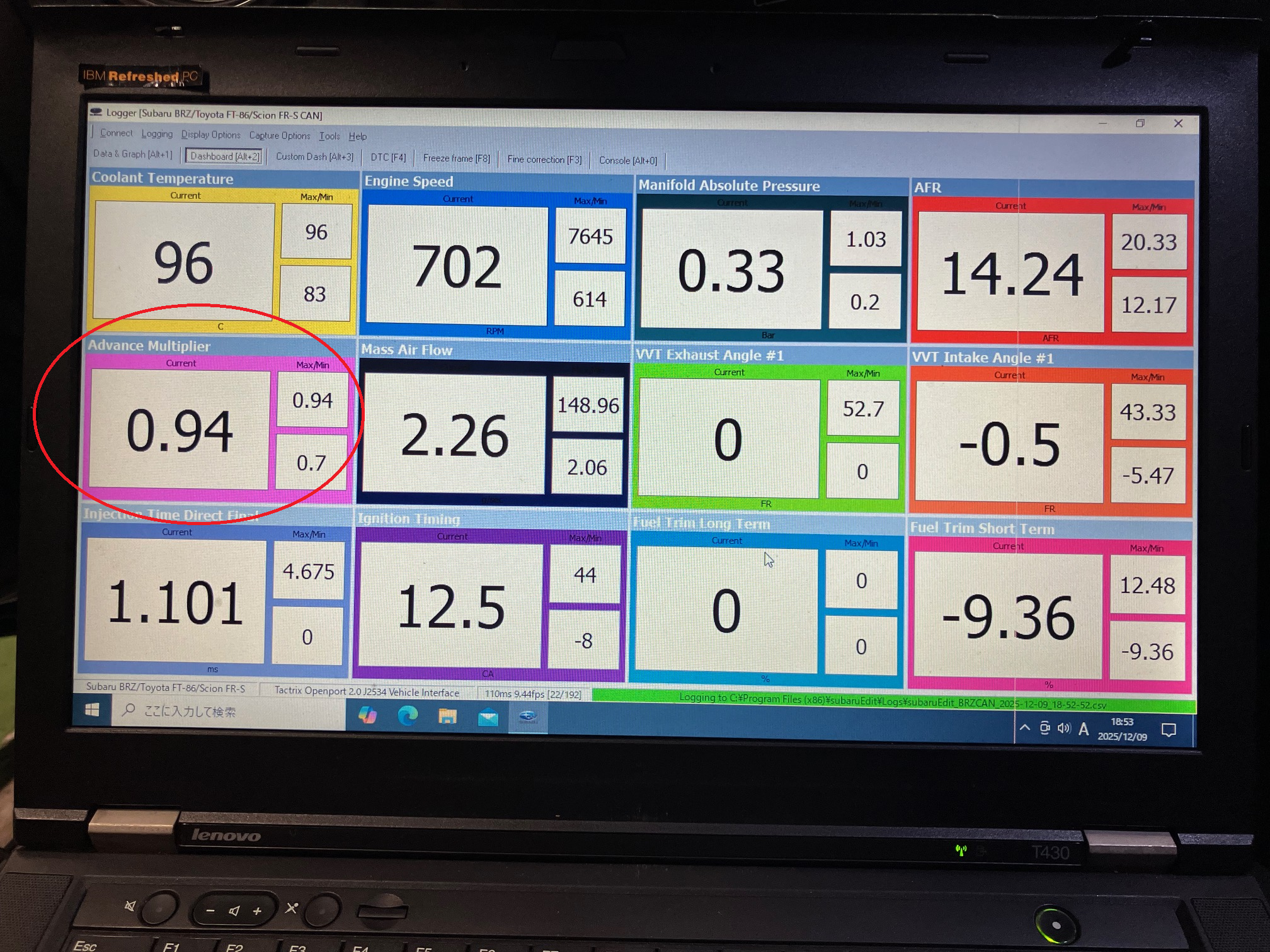 2025-12-10 ZN6 現車セッテインング、、、エンジン交換後、少し不調のリセッティングは、原因が判明。