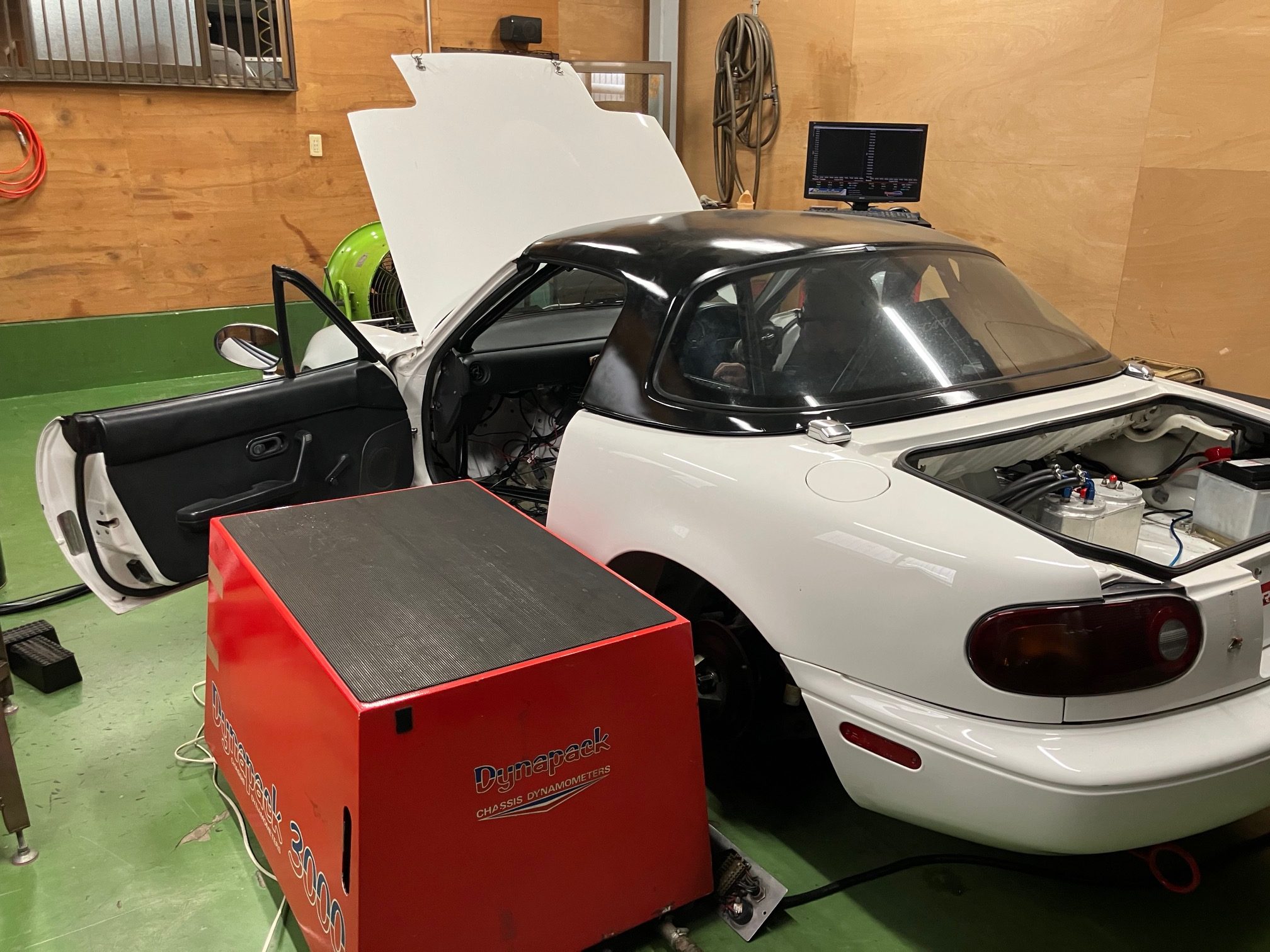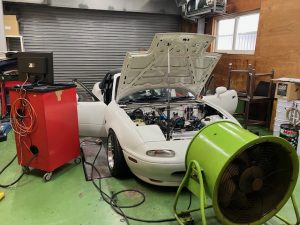 数カ月前からお預かりしていた、ロータリーロードスターですが、エンジンは、13Bペリでエンジンベンチでセッテインングと慣らし運転を終わらせて、車両に載せましたが、、、吹けない。。。って事で、入庫しましたが、電気廻りにトラブルを沢山抱えていて、ハマっては、直し、ハマっては、直しの繰り返しでした。最初は、始動困難で、バッテリーサイズ、アースケーブルの追加、燃料ポンプの配線、MOTECの電源、ブロックアースなど、、そして、ミラクルで近所の電装屋さんにロードスターに使っているサバンナSA22Cのリビルトスターターが在庫が有り交換、、、始動困難は、切り抜け、吹けるようになったが、フィーリングが悪く、、ぱらつく、、、と、思ったら、クラッチが滑ってる??で、バラバラにしてクラッチ交換も済ませ、もう一回ダイノに載せるて、吹けないトラブルシュートで、色々パーツを変えてみたが直らず、コイルを交換したタイミングでT1コイルの配線のピンが折れているが分かりリペアー、、、少し良くなったが、、、根本は、変わず、、、基本に戻り、燃料ポンプの吐出量や泡をチェック良好、点火をチェック、、、あぁ、タイミングライトでT1をチェックすると、、、上死点位置に居ない、、、180°反対、、、T1とT2が逆になってました。そして、直った。。