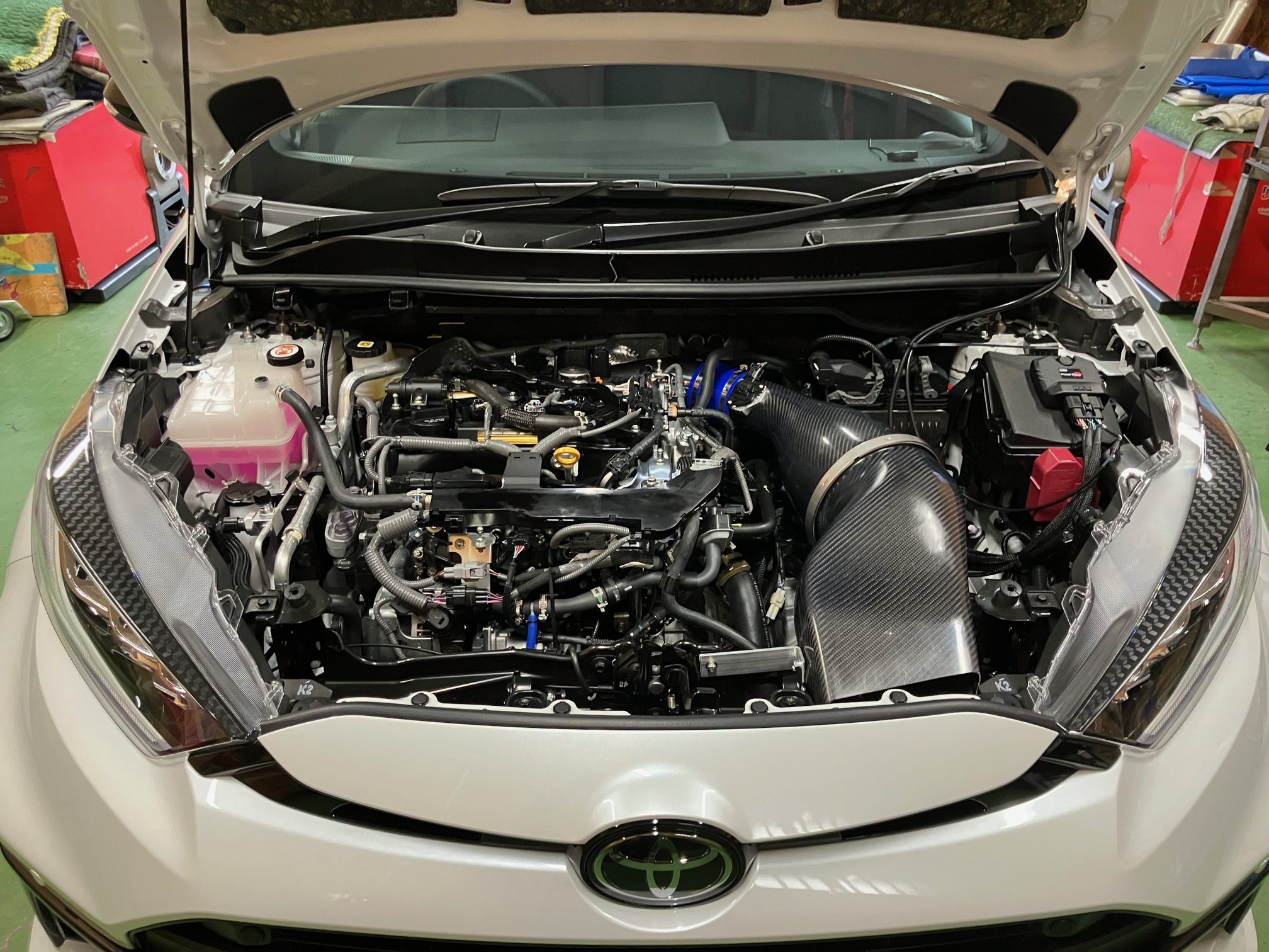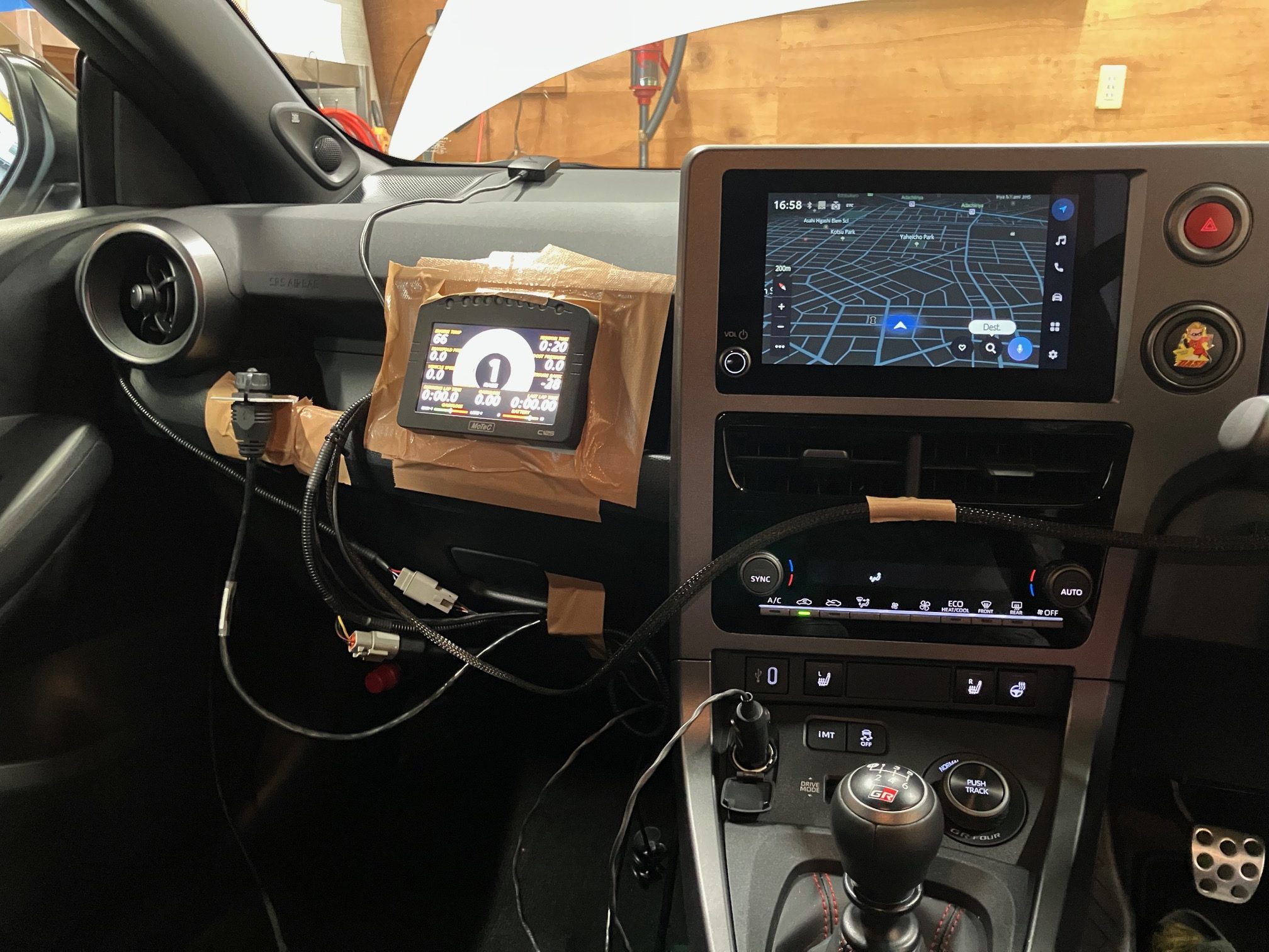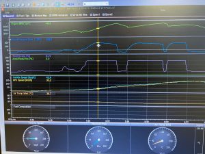 GRヤリス後期DATは、スーパーバトルで59.54秒、TC2000計測ポイントで185km、、まずますの仕上がりになってきました、、しかし、後期MT車両のセッティング台数が少ないので、今日は、DATのデーターをベースに少しづつ、ハイブースト化とブーストの安定性を実走行でMOTEC C125を使いロギングしてみましたが、中々の安定感を確認出来ましたが、連続でテストをすると、データーを変更した分、ブースト上がらなくなります。吸気温の上昇の為だと思われます、、今回のテストは、オリジナルのキャタ、クリーナーVer.2と75Φ社外マフラーのみでインタークーラーは、ノーマルのままでのテストでした。明日は、とあるコースに持ち込み、5速全開のテストをして、問題無ければ、完成です。DATと同様、ダイノでは、約380馬力ほどと思われますが、最近は、サーキット&実走行優先でセットアップしています。