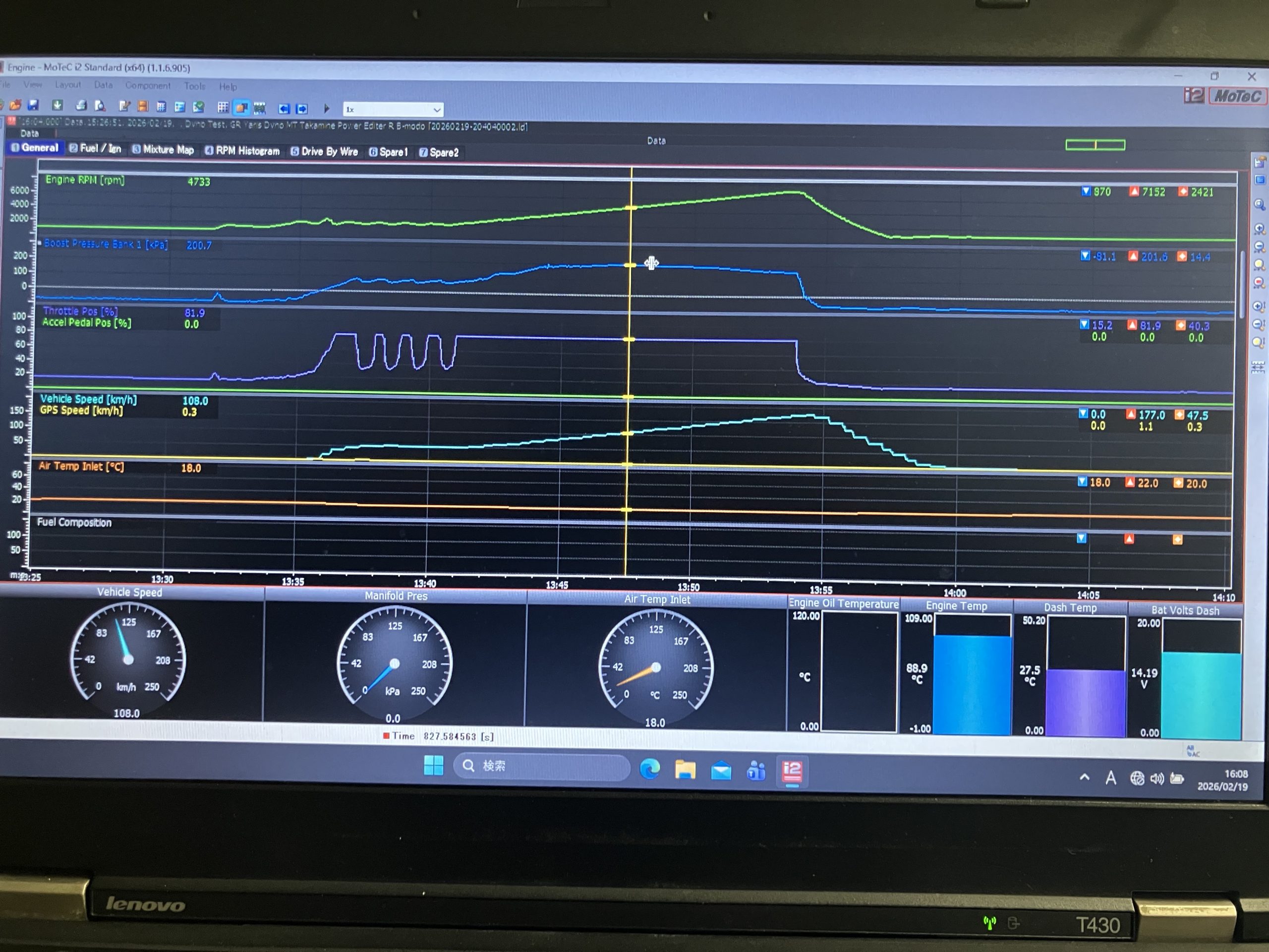Bモードでブースト20K パワー374.80Ps トルク54.89Kgm
